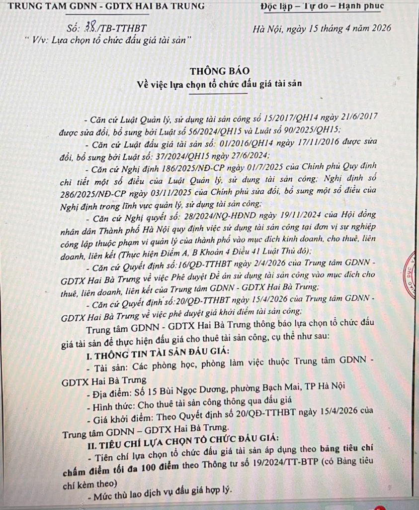THÔNG BÁO VỀ VIỆC LỰA CHỌN CÔNG TY TỔ CHỨC ĐẤU GIÁ TÀI SẢN